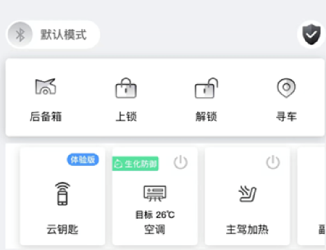 在APP的“爱车”页面点击车控按钮:解锁、闭锁、后备箱、寻车,可以实现对应的蓝牙主动车控功能;