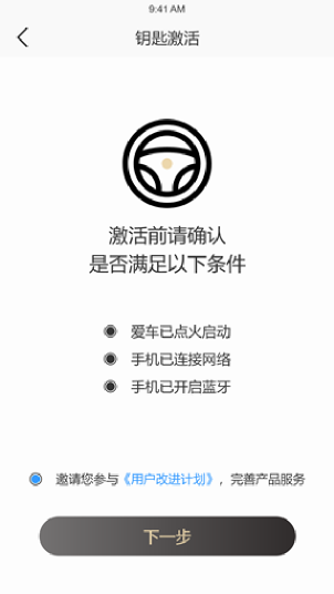 a)首次激活,根据页面引导进入钥匙激活流程;